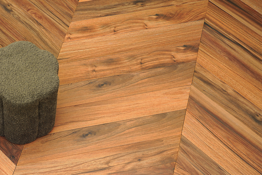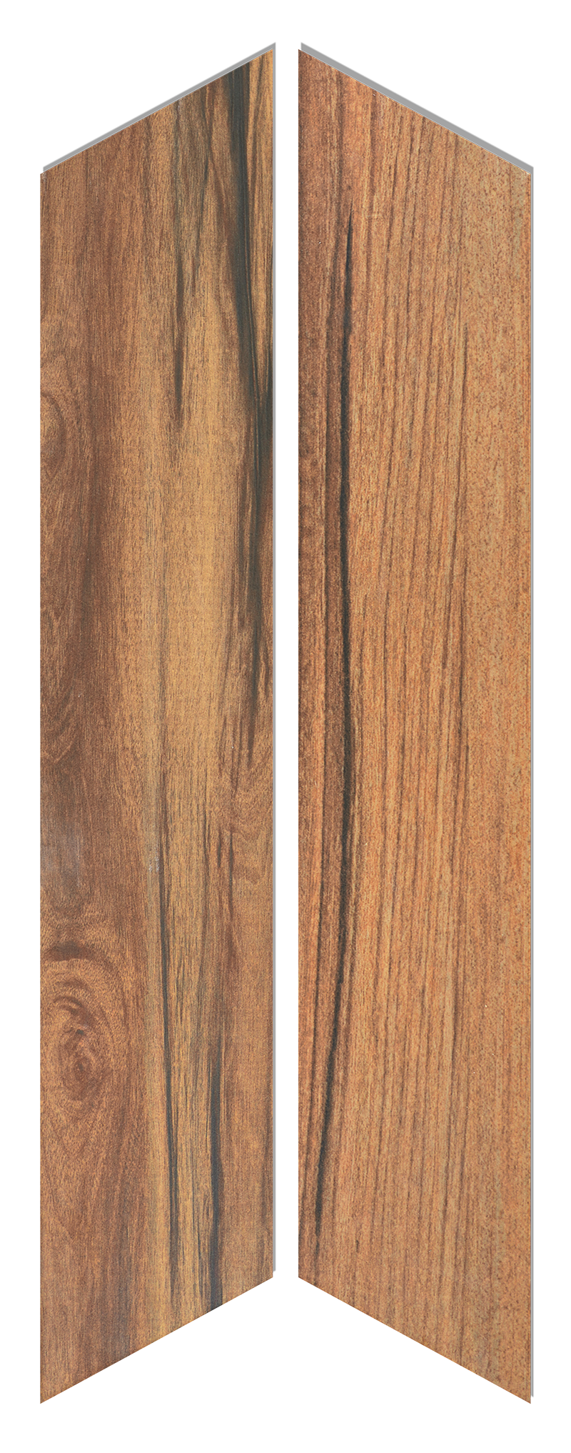 Teak-inspired wood-look tiles featuring rich natural grains and warm tones,bringing tropical elegance and durability to modern interiors.