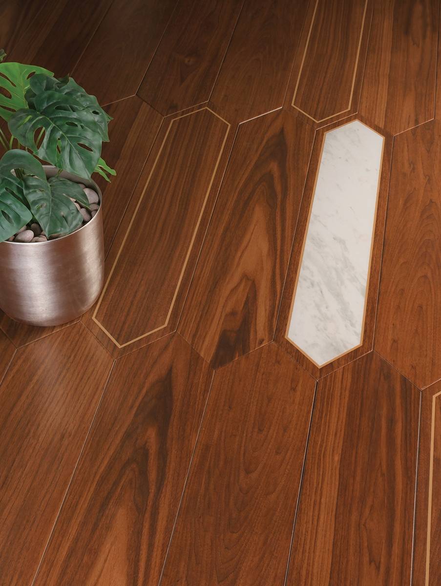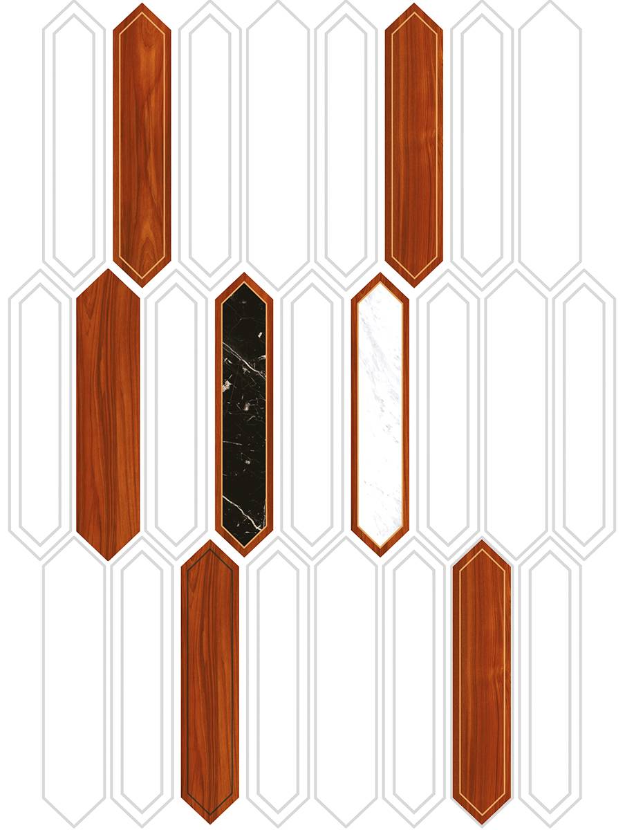 The Diamante Collection offers a unique range of designs that blend natural beauty with innovative craftsmanship Featuring five distinctive effects, the collection showcases the timeless appeal of wood, enhanced by elements like brass channels and marble, to create a sophisticated and luxurious look. Whether it's the warmth of pure wood, the elegance of white or black marble combined with wood, or the seamless flow of wood channels, each design is crafted with the finest natural minerals and raw materials.