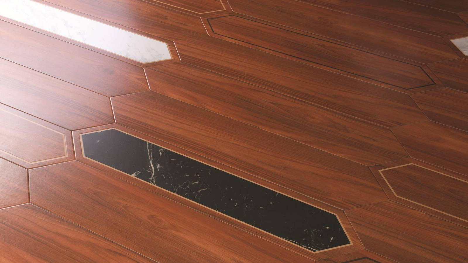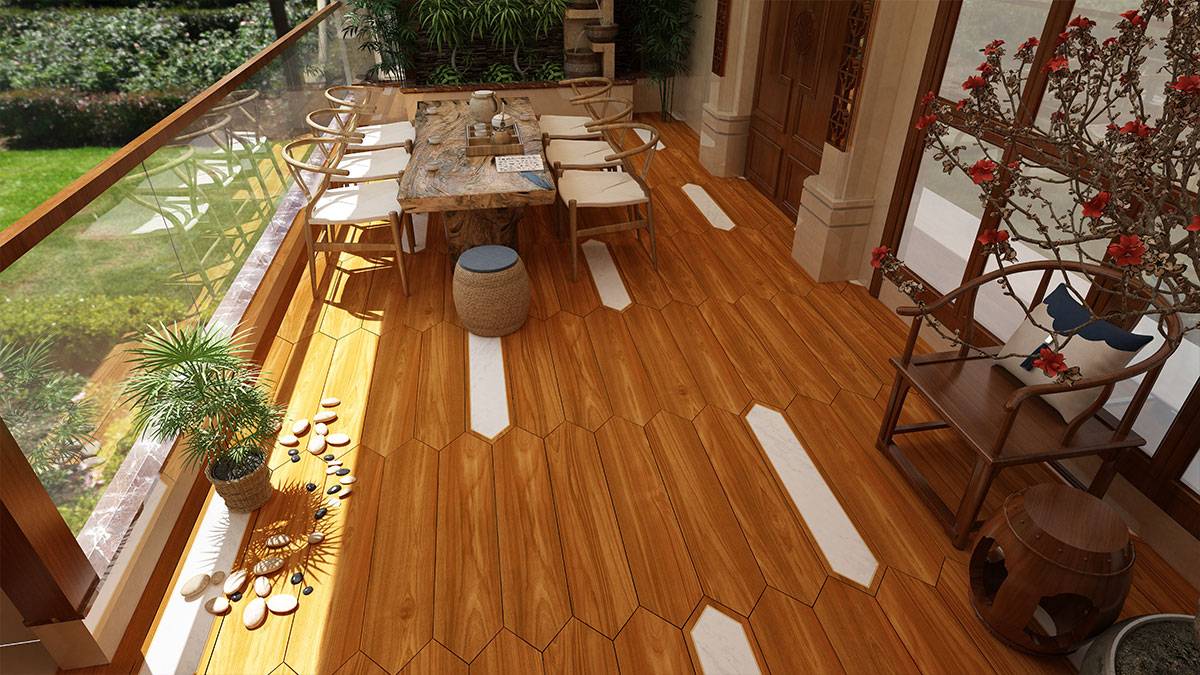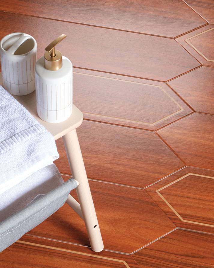 Imagine a floor that tells a story —a blend of rich wood textures, the refined elegance of marble, and the brilliance of brass, all without the actual metal. Each plank tile is a masterpiece, crafted to bring depth and character to any interior.