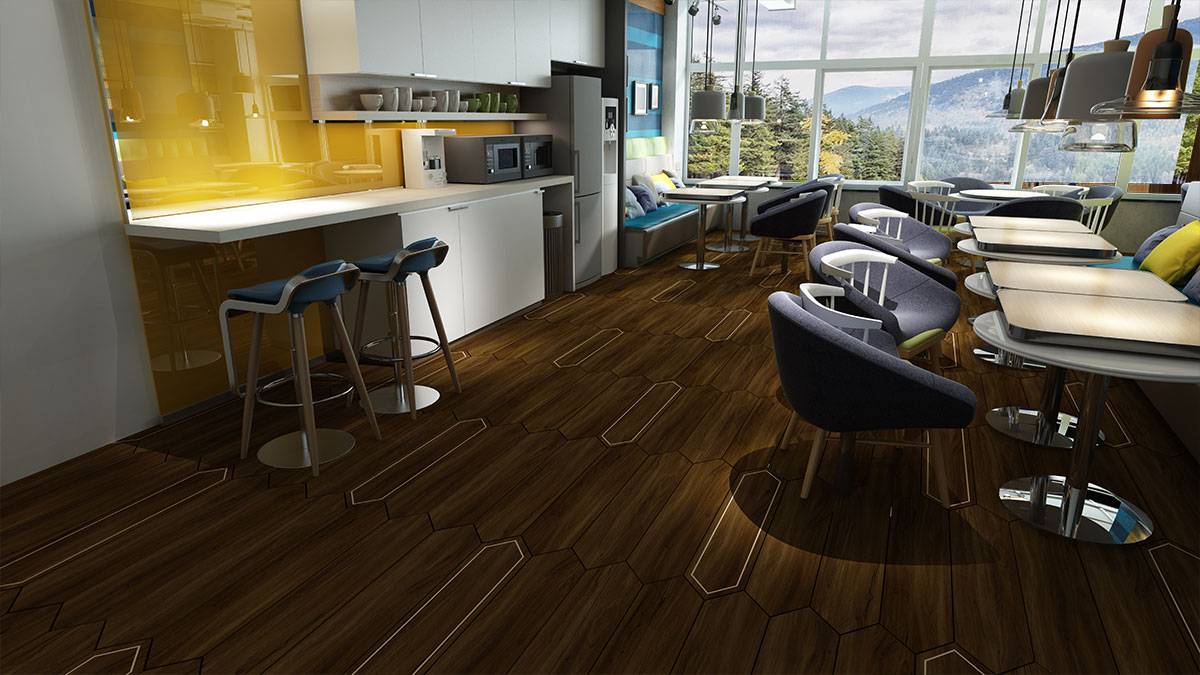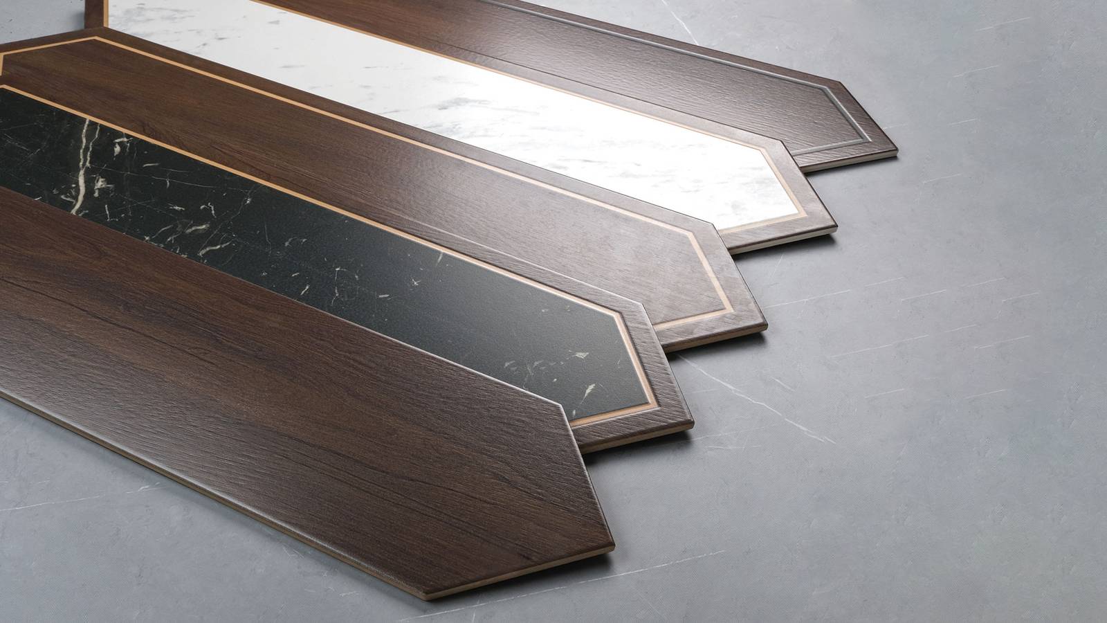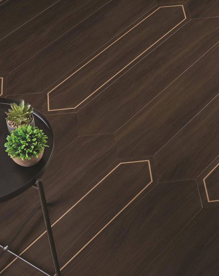Imagine a floor that tells a story —a blend of rich wood textures, the refined elegance of marble, and the brilliance of brass, all without the actual metal. Each plank tile is a masterpiece, crafted to bring depth and character to any interior.