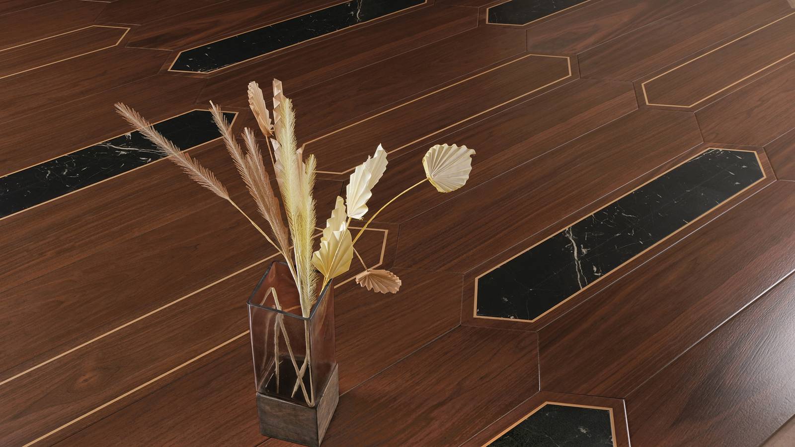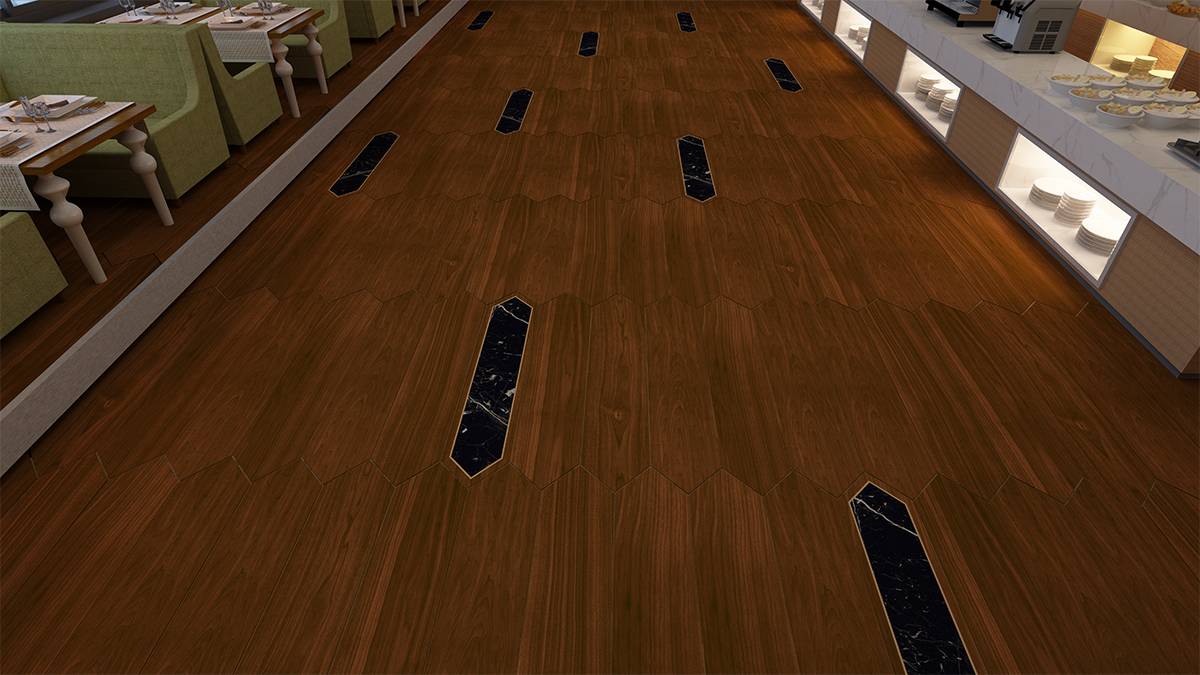 Imagine a floor that tells a story —a blend of rich wood textures, the refined elegance of marble, and the brilliance of brass, all without the actual metal. Each plank tile is a masterpiece, crafted to bring depth and character to any interior.